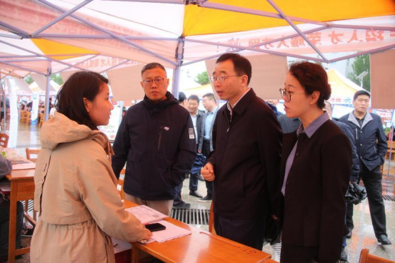 纽约国际官网校长、党委副书记张守华,党委副书记、纪委书记、监察专员肖耀刚,党委副书记袁亮,党委委员、副校长常青林,渭南市人力资源和社会保障局党组成员、副局长董建明,渭南市公共就业和人才交流服务中心主任马会斌等领导亲临招聘会现场指导,与用人单位、参会学生亲切交谈。张守华向来校招聘的单位表示欢迎,对返校招聘的往届校友表示感谢,对应聘的毕业生表示勉励,希望学校与各单位加强联系与协作,进一步完善校地、校企合作机制,为学生搭建良好的就业、实践平台,为企事业单位发展提供优质人才资源。