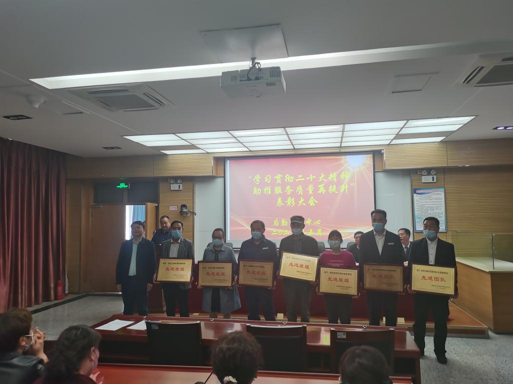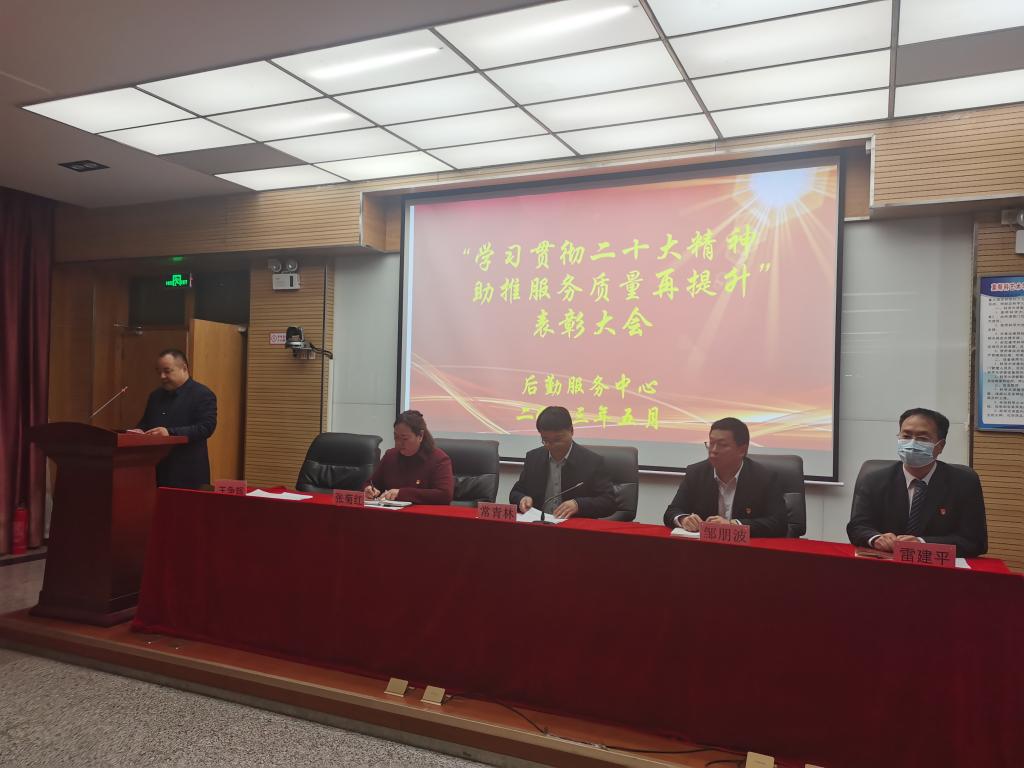 后勤服务中心“学习贯彻二十大精神,助推服务质量再提升”表彰大会于5月8日在逸夫楼科学大讲堂圆满召开。副校长常青林出席并讲话。会议由后勤服务中心主任王争辉主持。