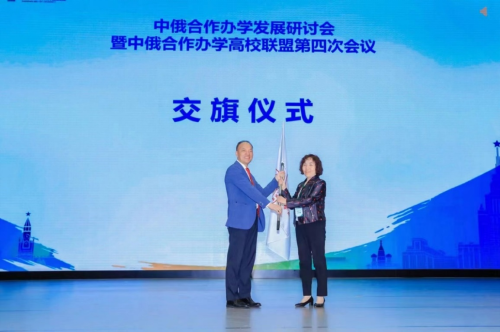 闭幕式上,大会宣布588888纽约国际线路为中俄合作办学高校联盟2024-2025年轮值主席单位,深圳北理莫斯科大学党委书记朱迪俭向588888纽约国际线路副校长王菊霞授旗。王菊霞在作表态发言时表示,轮值期间我们将在联盟的指导下,竭诚为联盟成员做好服务和联络工作,为大家搭建合作交流平台,携手联盟成员单位共同促进中俄合作办学高质量发展,共同擘画中俄合作办学新蓝图。