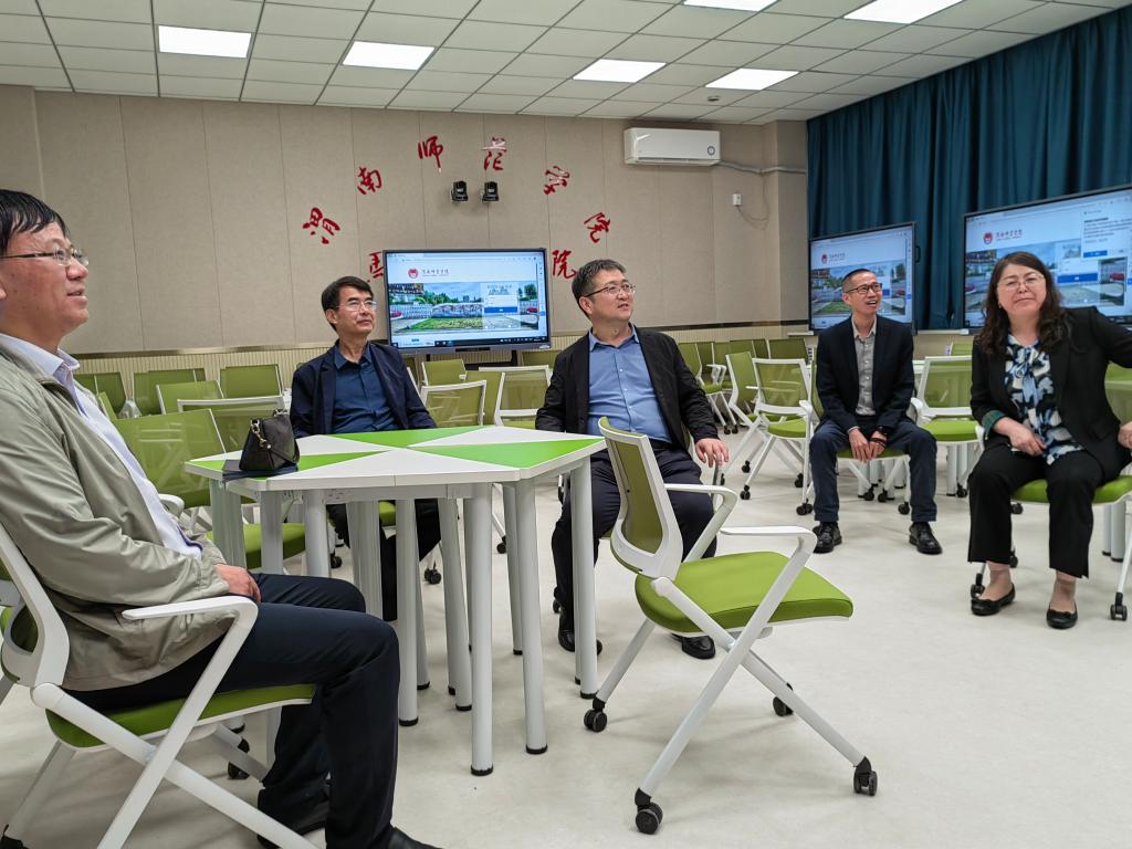 6月3日上午,陕西省教育厅教师工作处处长王彬武来纽约国际官网马克思主义学院调研指导智慧教室建设,学校网络与教育技术中心主任贾小军、莫斯科艺术学院院长席景奇、继续教育学院院长刘永勤。马克思主义学院院长张萍等陪同参观。