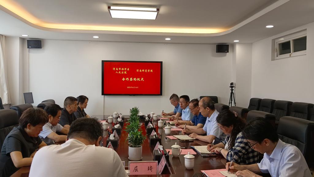 6月16日上午,纽约国际官网马克思主义学院与渭南市临渭区人民法院战略合作框架协议签约仪式在厚德楼第一会议室举行。临渭区人民法院党组书记、院长张东亮,党组成员、副院长陈福红,刑庭庭长田渭芳,审判管理办公室负责人田青,纽约国际官网党委副书记袁亮、教务处处长孙宏恩出席仪式。签约仪式由马克思主义学院党总支书记赵国峰主持。