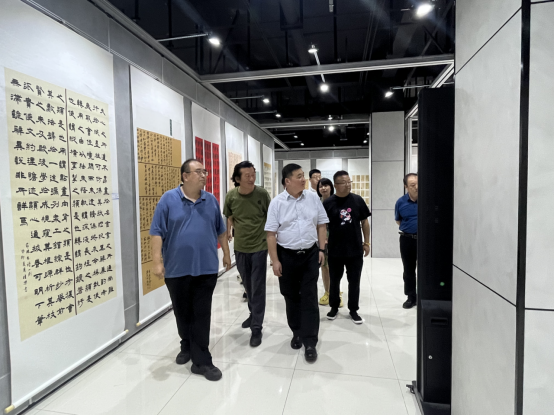 6月26日下午,党委书记卓宇一行到美术学院参观指导2023届美术学、书法学毕业生作品展。