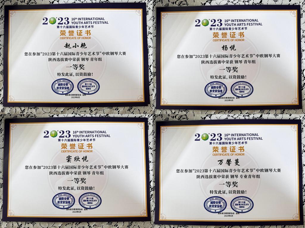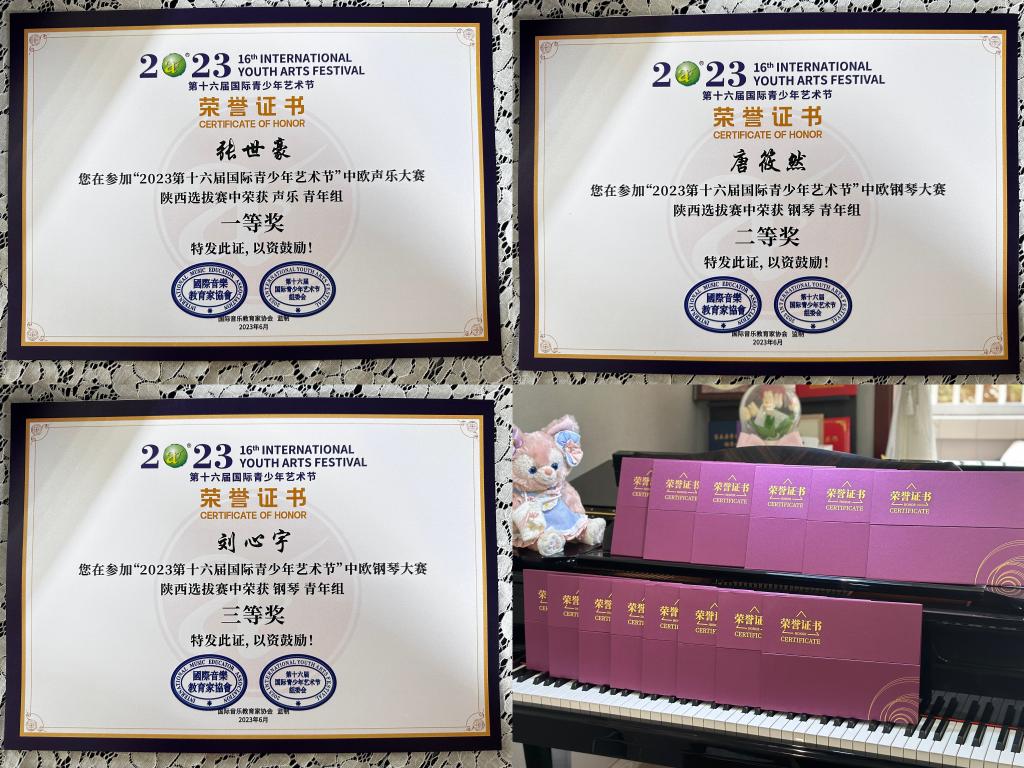 近期,由荷兰Matching Arts 音乐出版社,国际音乐教育家协会和国际青年艺术促进会主办的“2023第十六届国际青少年艺术节”中欧钢琴/声乐大赛陕西赛区选拔赛在西安音乐学院柏斯KAWAI音乐厅落下帷幕。莫斯科艺术学院音乐学专业学生在大赛中喜获佳绩。窦欣悦,万馨蔓,赵小艳,杨悦同学获钢琴青年组一等奖;张世豪获声乐青年组一等奖,唐筱然获钢琴青年组二等奖,刘心宇获钢琴青年组三等奖;王思佳,石萌老师获优秀指导教师奖。