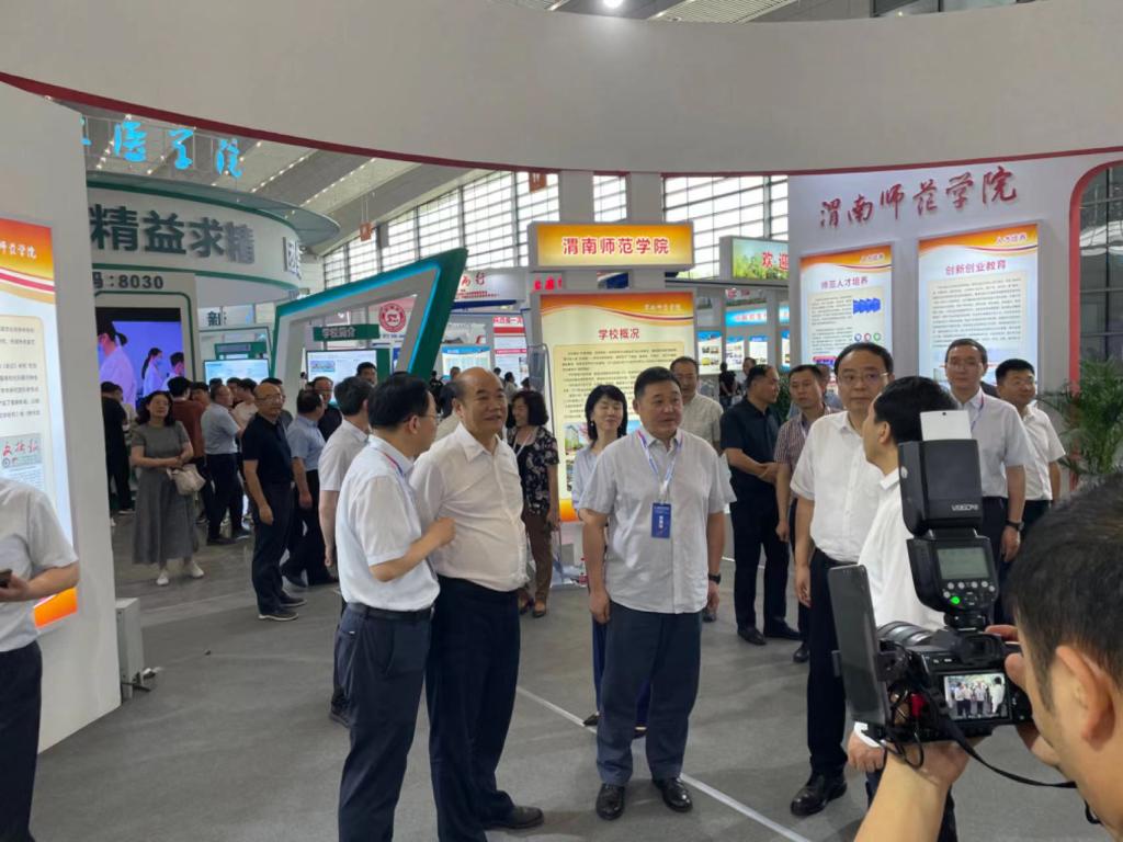 陕西省委教育工委书记刘建林、陕西省教育厅厅长王树声等领导莅临纽约国际官网展区指导,学校党委书记卓宇、校长张守华、副校长王菊霞介绍参展情况。