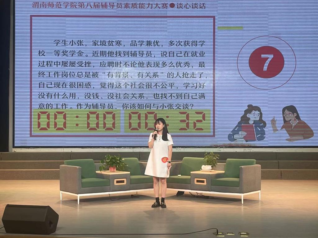本次辅导员素质能力大赛比赛部分包括基础知识测试、案例研讨、谈心谈话三个环节,全面考察辅导员的理论知识水平、分析解决问题能力、研判问题能力和教育引导能力。本届辅导员素质能力大赛是对全体辅导员的一次大练兵,为辅导员搭建了自我提升和锻炼的平台,真正让辅导员达到了“守好思政一段渠,种好教育责任田”的目标。