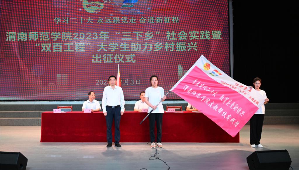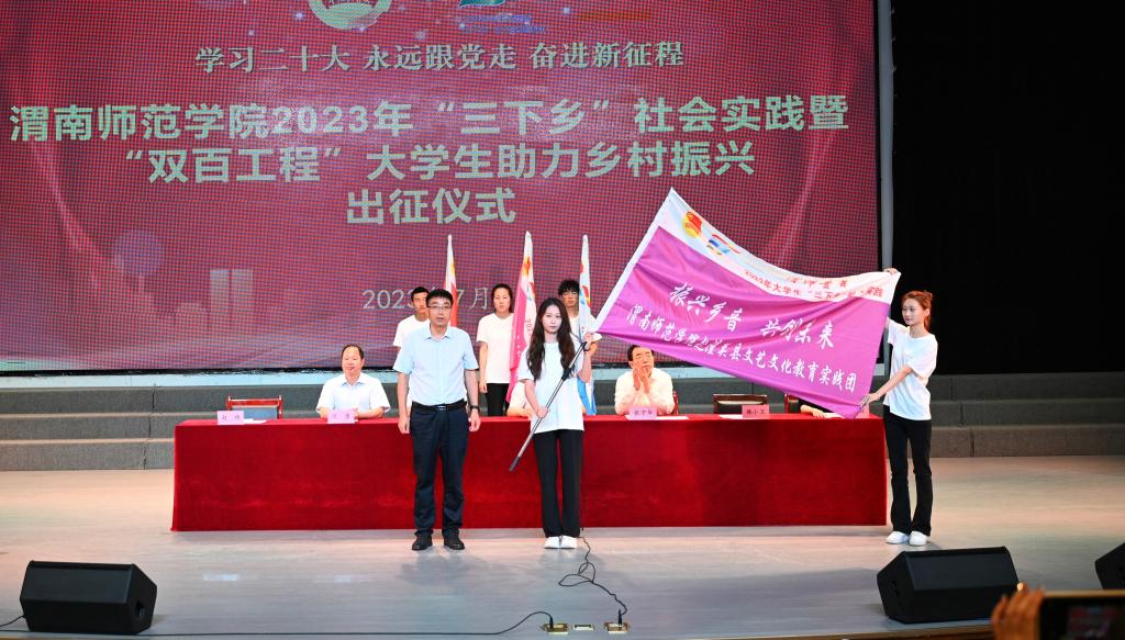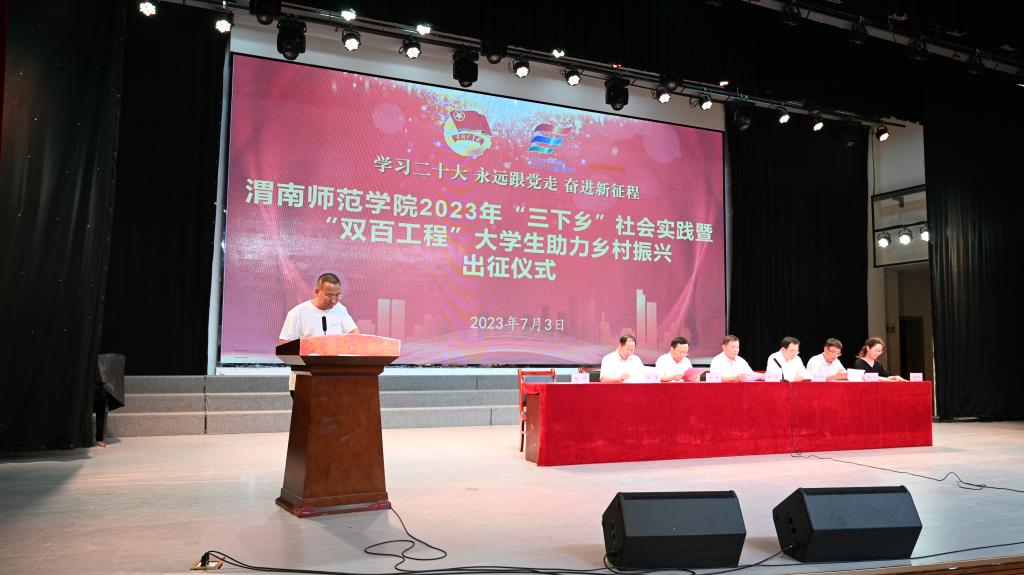 7月3日下午,纽约国际官网举行2023年暑期大学生社会实践活动出征仪式,党委书记卓宇,校长张守华,共青团渭南市委副书记李林,校党委副书记韩小卫、汪勇出席活动。仪式由校团委书记赵琦主持。