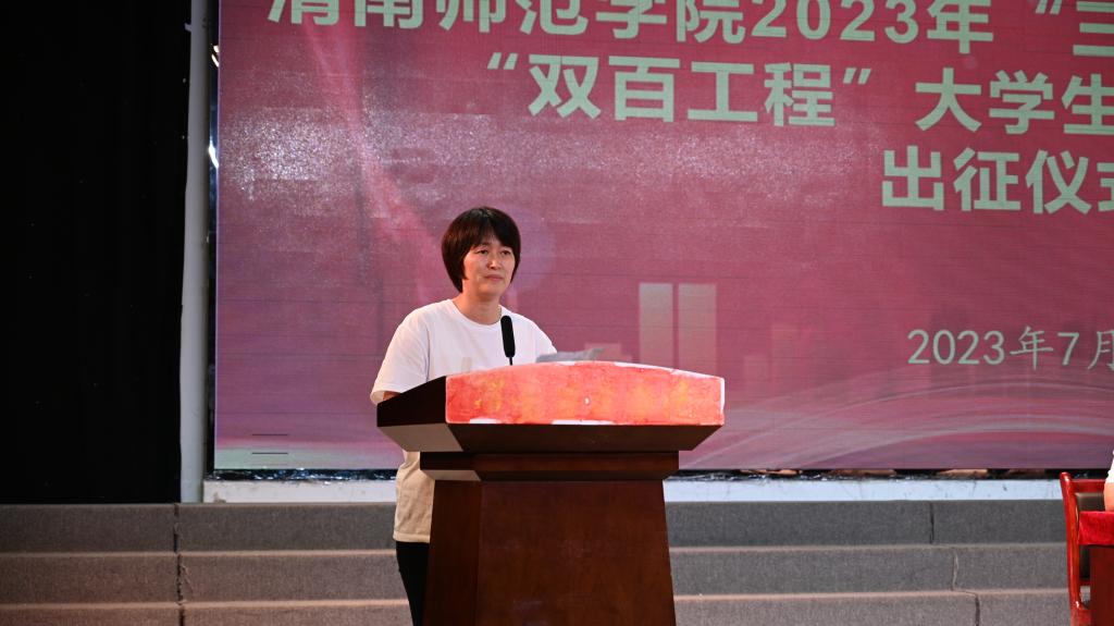校团委、学生工作部(处)、各二级学院党总支副书记、团总支书记,以及暑期社会实践团队指导教师代表、团队成员代表近200余人参加出征仪式。(通讯员 潘涛 审核人 赵琦)