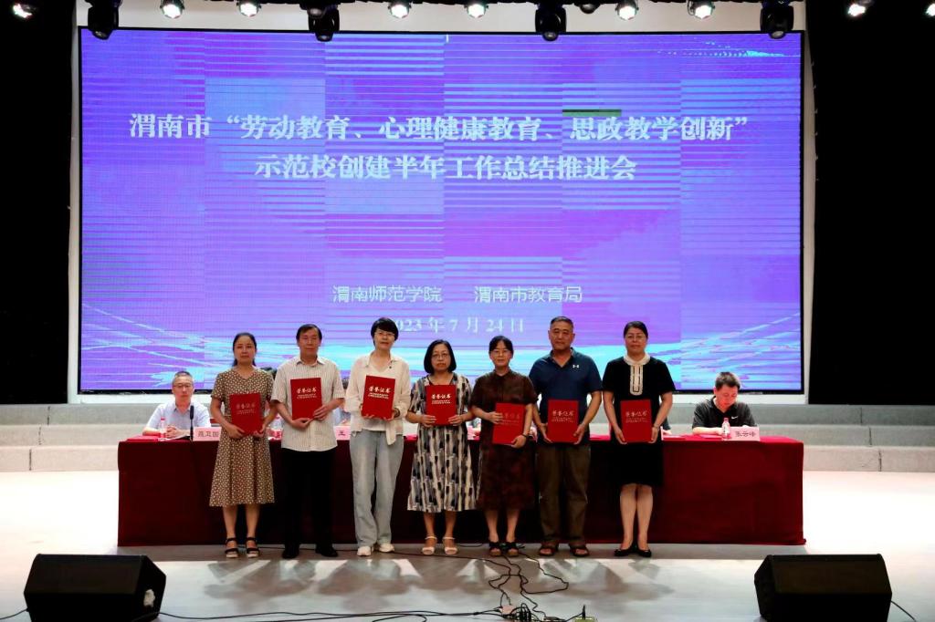 会上,王军对专家入校指导和学校创建工作进行了点评,要求进一步落实四项帮扶研修任务,开展督导检查推进,并对市级专家团队“导师”+基层学校“种子教师”工作机制进行了安排部署。临渭区教育局和大荔县教育局就“三类示范校”创建整体工作推进情况进行了现场交流,华州区大明镇中心小学、合阳县第二高级中学、韩城市桢州学校分别就劳动教育主题、心理健康教育主题、思政教学创新主题进行了经验分享。会议还为“三类示范校”创建专家团队导师代表和“种子教师”代表颁发了证书,为参会教师组织了专家报告辅导。
