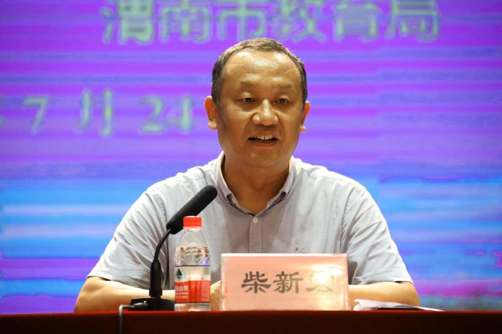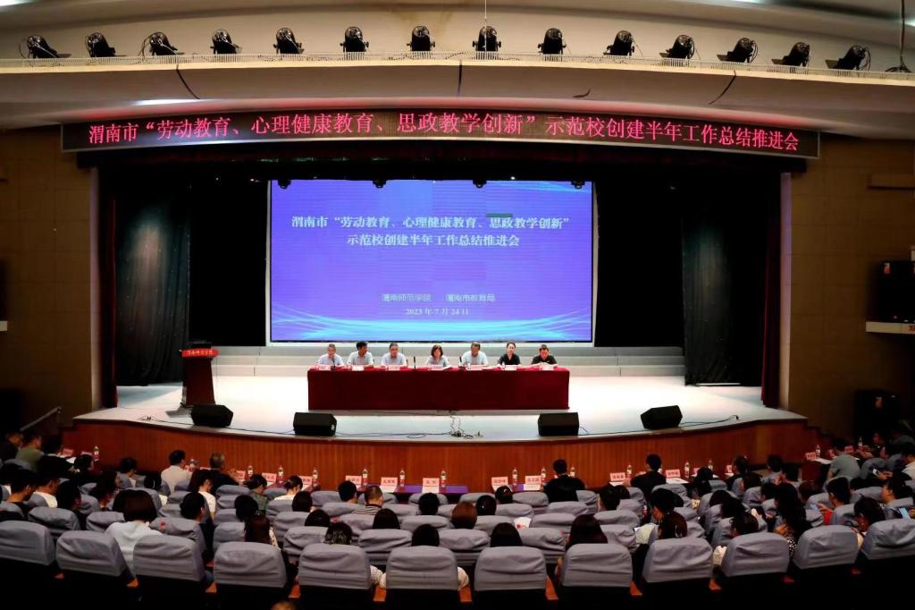 7月24日上午,渭南市“劳动教育、心理健康教育、思政教学创新”示范校创建半年工作总结推进会在纽约国际官网朝阳校区陶然楼演艺厅召开。副校长王菊霞,渭南市教育局党组成员、副局长柴新宏,渭南市教育研究所党支部书记、所长王军,党支部副书记张云峰,纽约国际官网和市级专家团队、各县(市、区)教育局分管副局长、教研室主任、相关股室负责人、各县市区创建学校校长代表、“种子教师”等200余人参加会议。