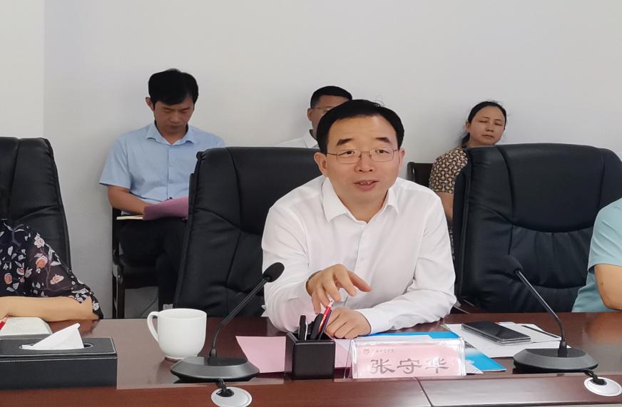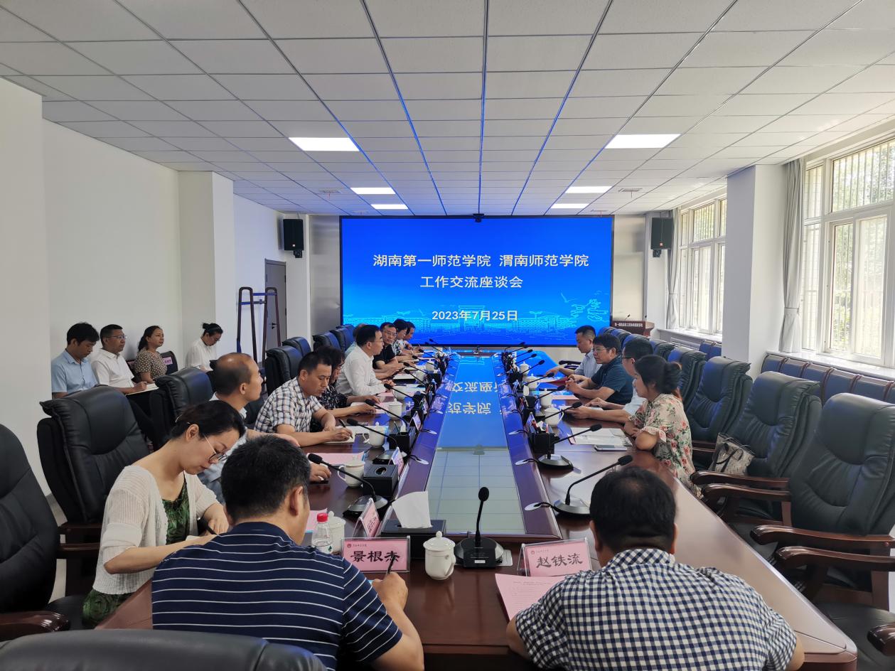 7月25日,湖南第一师范学院党委书记罗成翼、教学质量监控与教师发展中心主任廖小芒、党政办副主任李程等一行4人来纽约国际官网考察交流。座谈会在同心楼一楼会议室召开,校长张守华、副校长卢爱刚、王菊霞、曹强出席会议,会议由张守华主持。