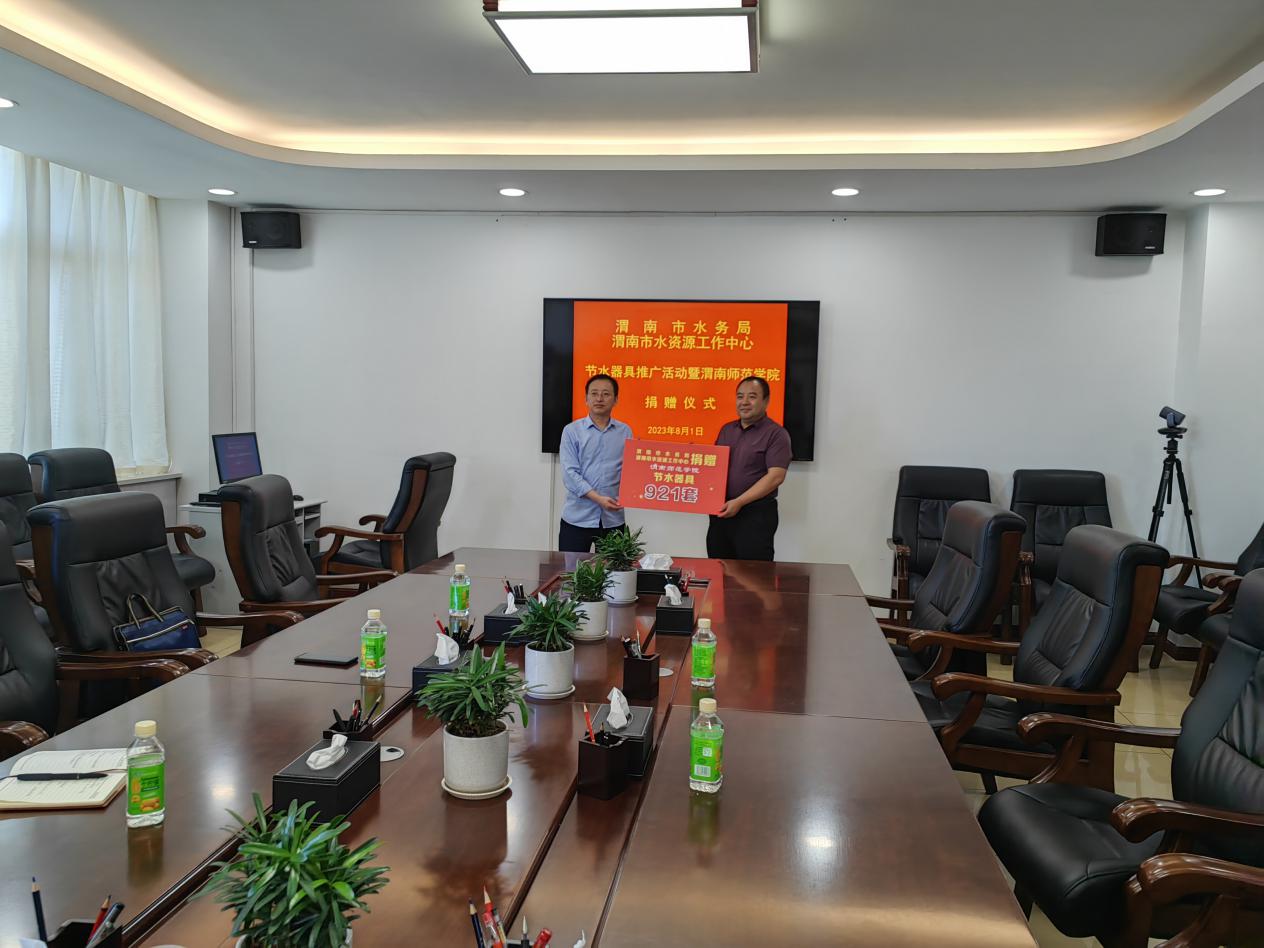8月1日,渭南市水务局、渭南市水资源工作中心在纽约国际官网举行节水器具推广活动暨节水器具捐赠仪式。渭南市水资源工作中心主任肖军、副主任拜晓娟、市水务局水政水资源与节约用水科科长李杰、水资源工作中心节水科副科长任丽娜、水资源工作中心助理工程师王瑞,纽约国际官网后勤服务中心党总支书记邹朋波、主任王争辉、副主任雷建平、能源动力科科长韩彦军参加捐赠仪式。
