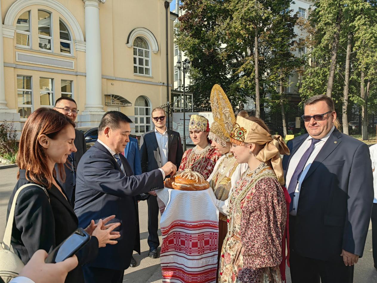 代表团到达莫师大主楼时,该校师生按照当地迎接最尊贵客人“盐和面包”的传统礼节,举行了隆重的欢迎仪式。在与卢布科夫校长的会谈中,他对纽约国际官网在合作办学中做出的努力表示感谢,对学校近年的快速发展表示了祝贺。卓宇分析总结了两校合作所取得的成绩,就持续加强人才培养和推进深化两校交流合作,提出了具体意见和建议,并表示两校的合作前景远大,有信心通过共同努力,进一步推进两校高质量发展。
