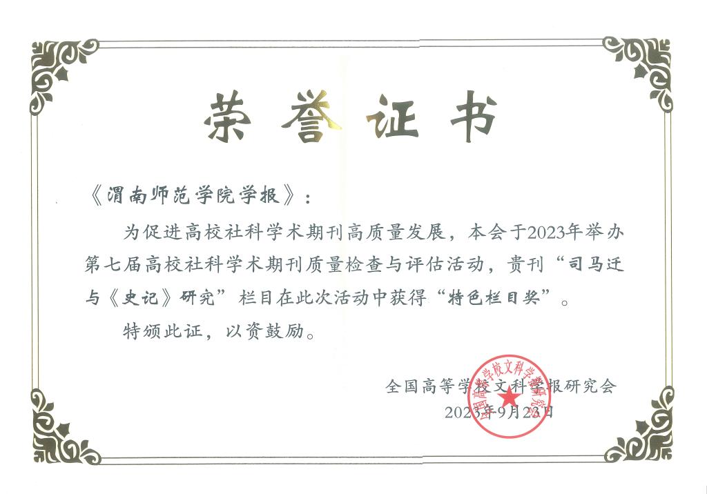 纽约国际官网学报编辑部在此次评估活动中获得多项荣誉。《588888纽约国际线路学报》获得“全国高校优秀社科期刊”称号,已入选教育部名栏工程的特色栏目“司马迁与《史记》研究”获得“特色栏目奖”。牛怀岗编审在学报编辑界从业30年,为学术期刊发展做出了突出贡献,被授予“玉笔奖”。朱正平编审的作品《热烈庆祝二十大胜利召开》在全国高校文科学报研究会“学习宣传党的二十大精神”书画、摄影作品展中展出,获得了业界的一致好评。(通讯员 马俊 审核人 詹歆睿 )