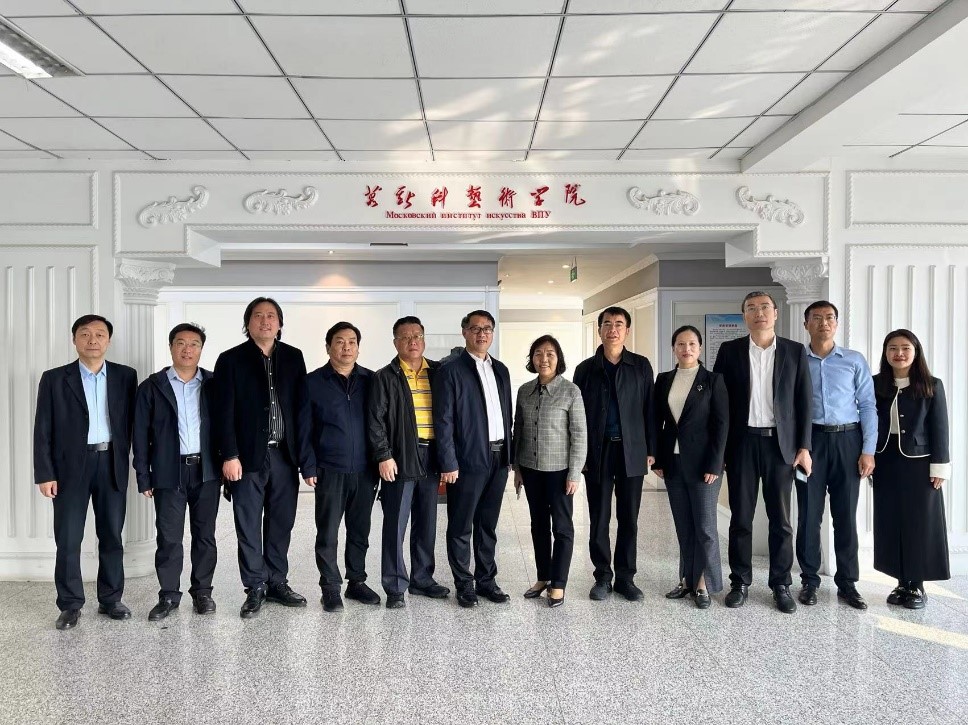 张茂聪一行首先参观了莫斯科艺术学院“深耕教坛,强国有我”庆祝第39个教师节书画创作成果展,观看学前教育专业手工作品展,考察排练厅、书法教室、学前教育实训室、音乐厅、画室、琴房、录音棚等教学场所。