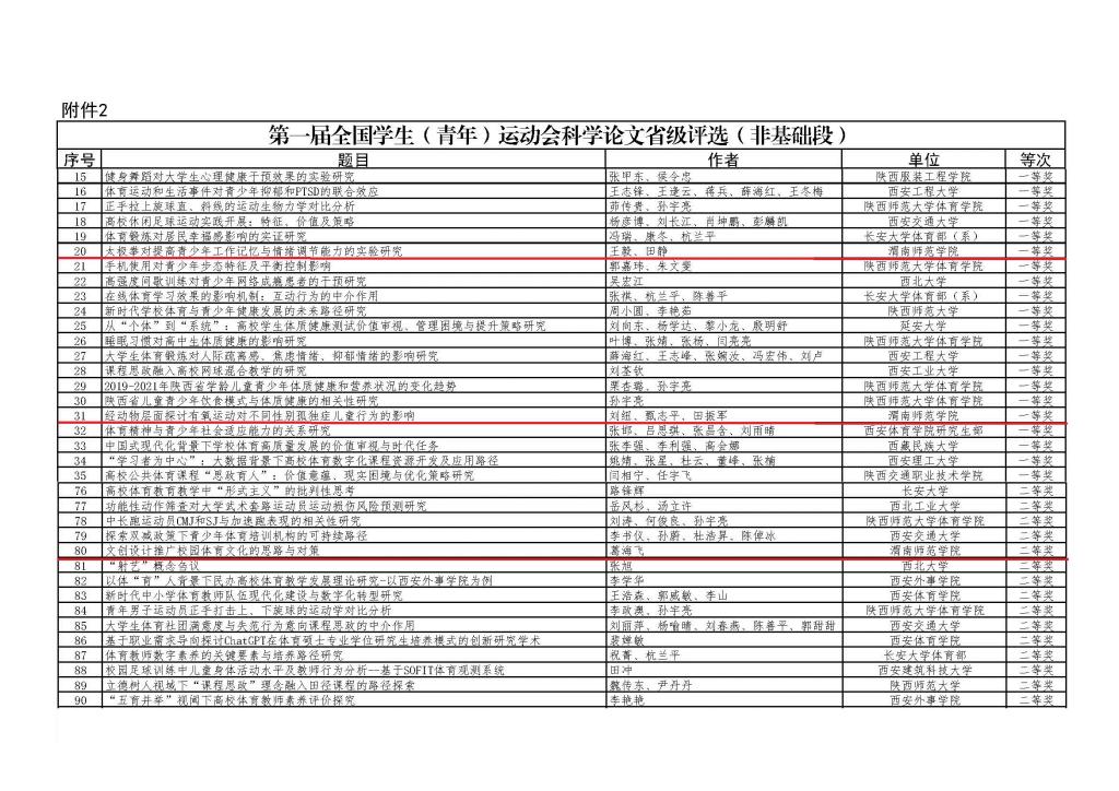 10月25日,陕西省教育厅办公室/陕西省体育局办公室公布了陕西省第一届全国学生(青年)运动会科学论文征集评选结果,纽约国际官网喜获佳绩,三位教师以第一作者上报的3篇论文获奖。