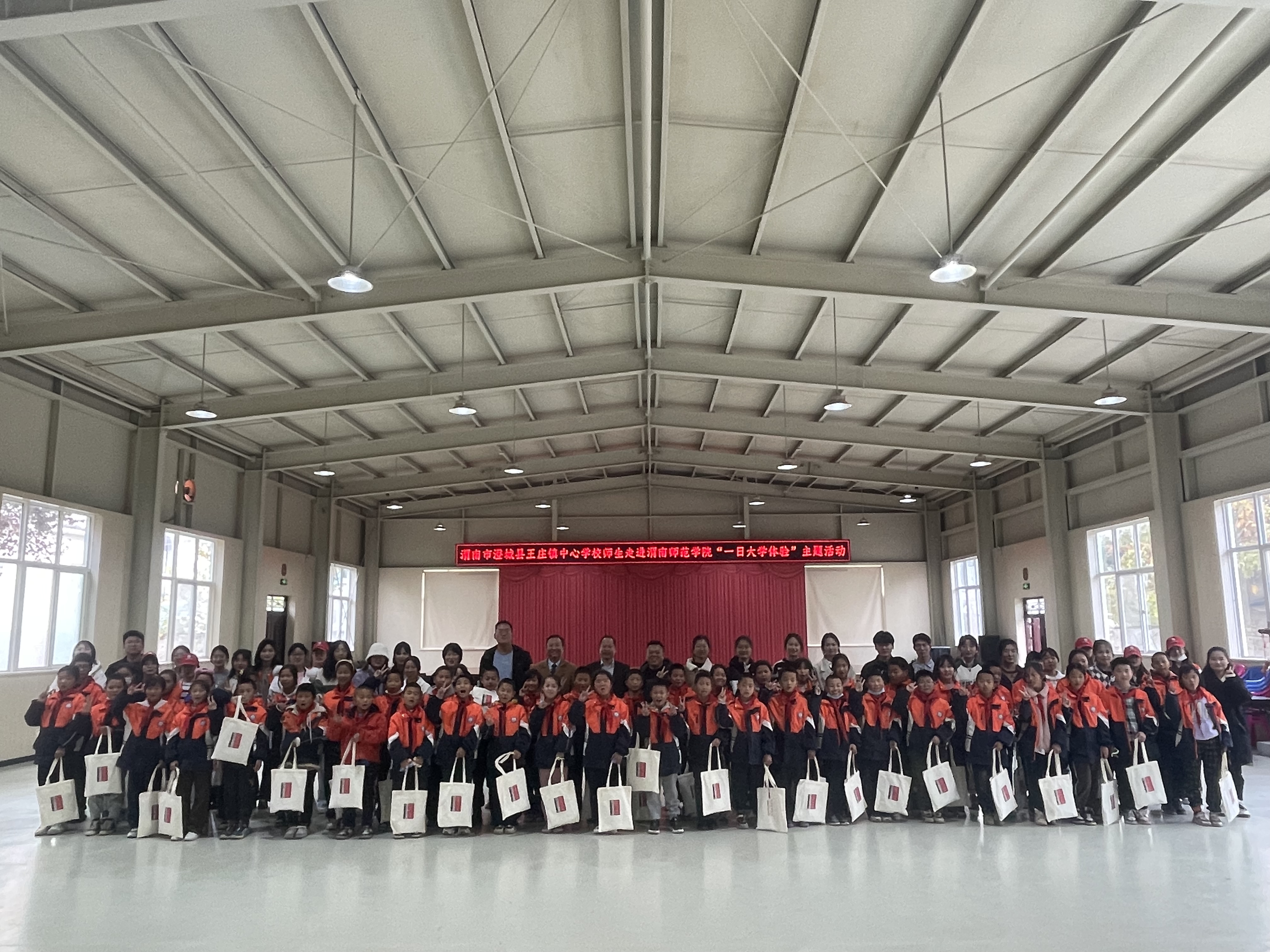 11月9日,纽约国际官网“双百工程”结对帮扶县、2023年暑期“三下乡”大学生社会实践所在地——澄城县王庄镇中心学校的56名师生在纽约国际官网校友、校长姚文斌的带领下来校开展“一日大学体验”主题活动。学校党委书记卓宇、党委副书记汪勇在厚德楼前与来校师生亲切交谈,表示慰问并合影留念。