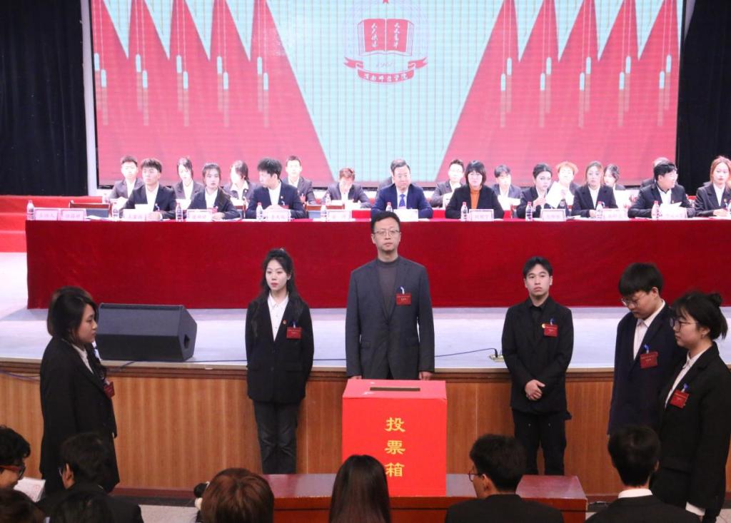 会议听取并审议通过《588888纽约国际线路第六届学生委员会工作报告》,于卓鑫等21名同学当选第七届学生委员会委员,王富强等4名同学当选学校第七届学生会主席团成员。