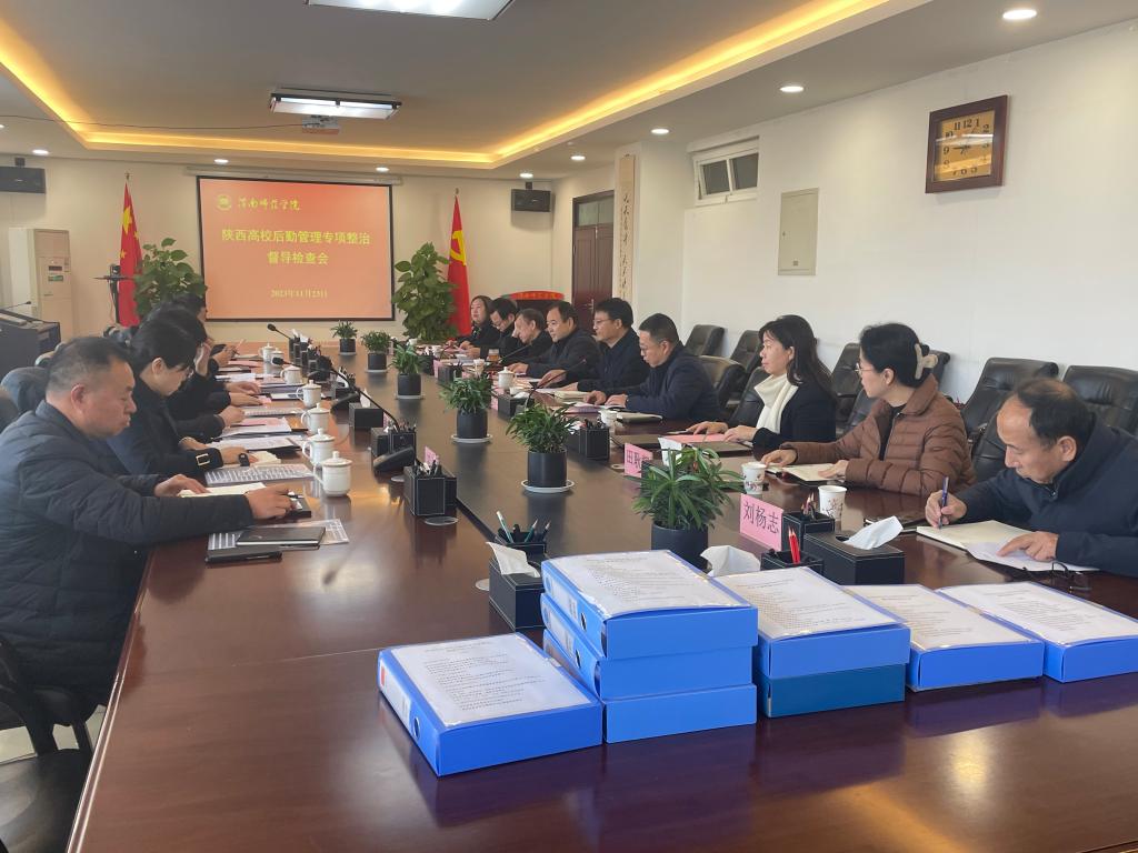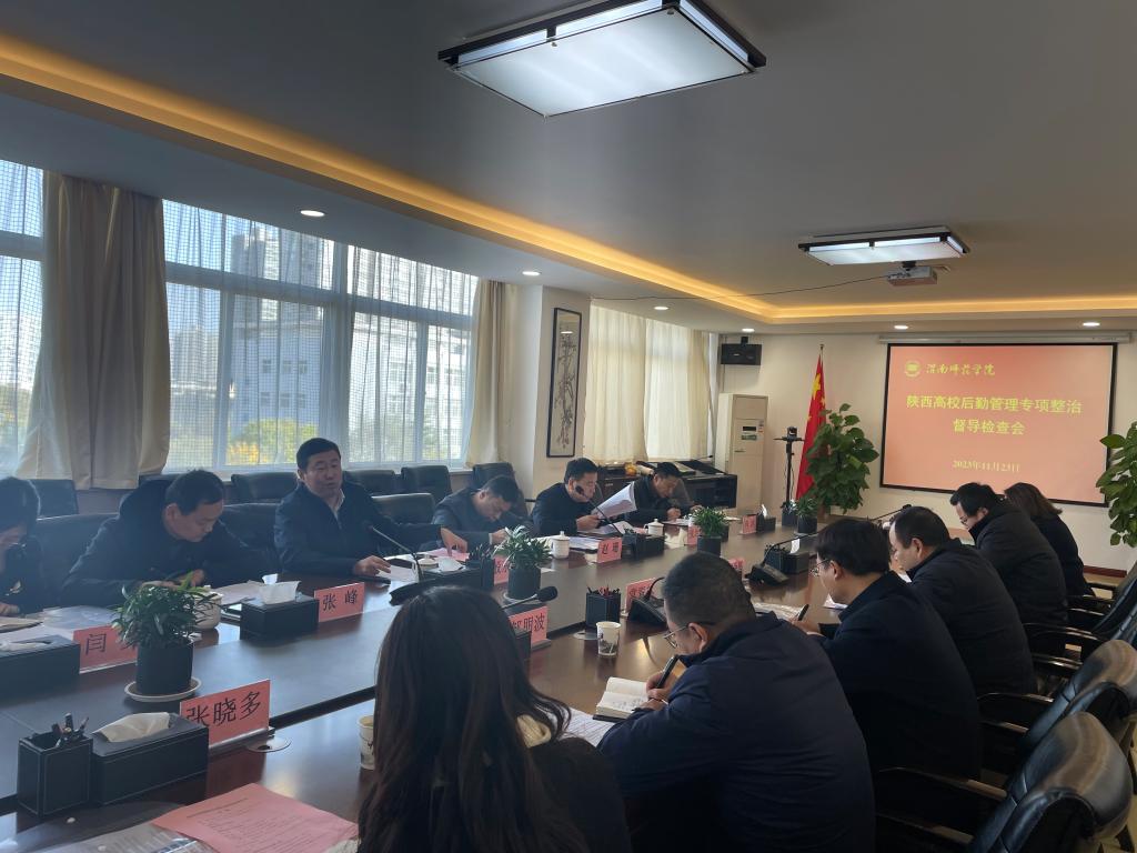 11月23日,陕西省教育厅高校后勤管理专项整治督导检查第四工作组来纽约国际官网开展督导检查工作,督导组组长、西安工程大学副校长殷永建带队督导检查,学校党委委员、副校长常青林出席汇报会并致辞。后勤服务中心党总支书记邹朋波主持汇报会。