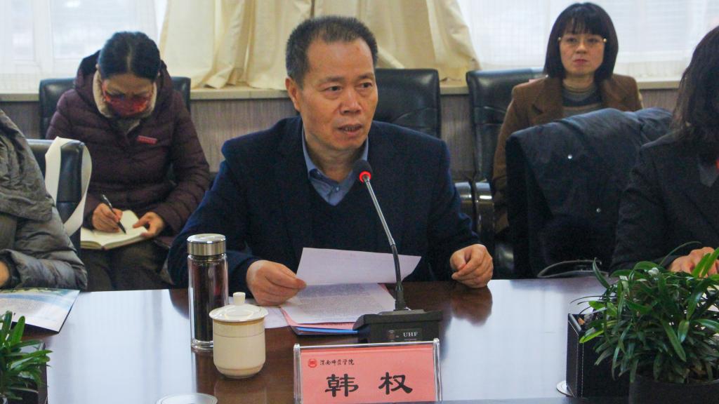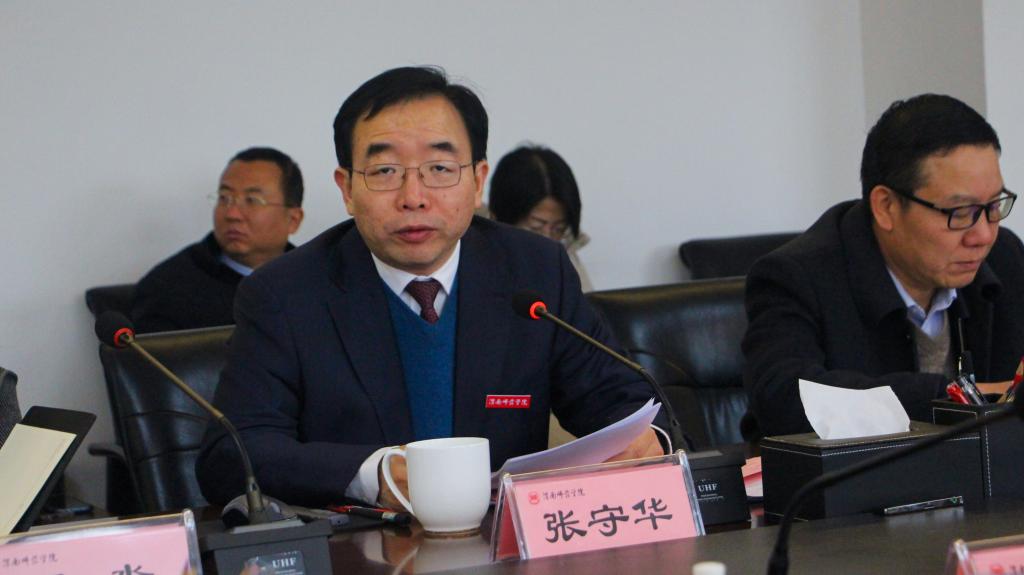 张守华代表学校对专家组一行进校考查表示欢迎,对陕西省教育厅、渭南市长期以来支持学校发展表示衷心的感谢,他以“扎根渭南,深耕教育,培养新时代大国良师”为题,从始终牢记育人初心,聚焦师范主业;大力弘扬红色文化,强化师德教育;持续健全质保体系,提高师范质量;扎根地方深耕教育,突出师范作为四个方面向专家组汇报学校师范类专业建设工作情况。希望各位专家以问题为导向,把脉问诊、传经送宝,帮助学校查找不足、开出良方,促进学校专业建设和办学水平的进一步提高。