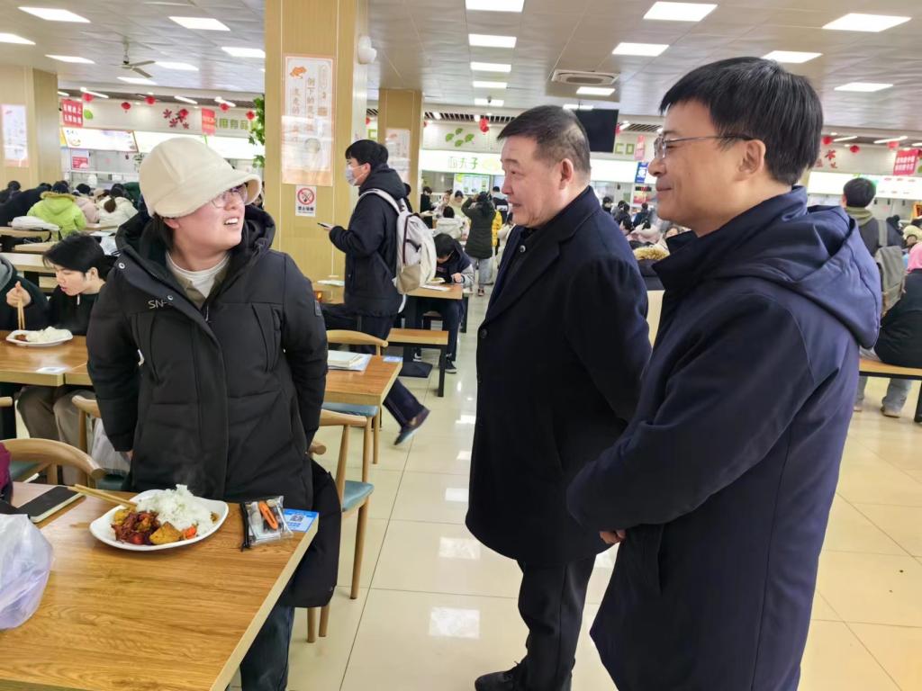 23日午餐过程中,党委书记卓宇、副校长常青林等一行深入学生餐厅,了解饭菜供应情况,并与考生亲切交谈,鼓励考生坚定信心、积极应考,考出优异成绩。