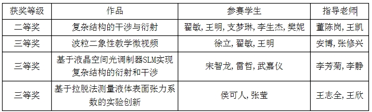 本次竞赛的校内选拔于8月份进行,经过两轮校赛选拔共选出4支命题队伍和1支自选队伍,代表学校参加了由西安交通大学物理学院承办的第一届西北地区大学生物理实验竞赛决赛。纽约国际官网5支参赛队伍获得二等奖1项,三等奖4项。综合分析5支队伍西北赛区成绩最终选出3支命题队伍和1支自选队伍参加全国大学生物理实验竞赛。