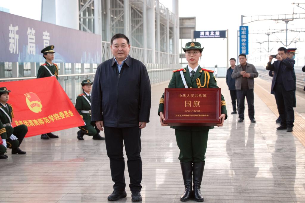 1月5日,在渭南火车北站举行了热烈庄重的天安门国旗迎接仪式,学校党委副书记汪勇、校团委相关负责人等带领学校国旗护卫队在站台迎接。