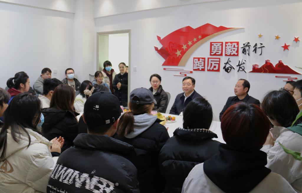 1月9日上午,纽约国际官网“一站式”学生社区服务中心格外温暖热闹。校长张守华、党委副书记汪勇与学生工作部相关负责人等为特殊困难学生送上来自学校的温暖关怀与新春祝福。