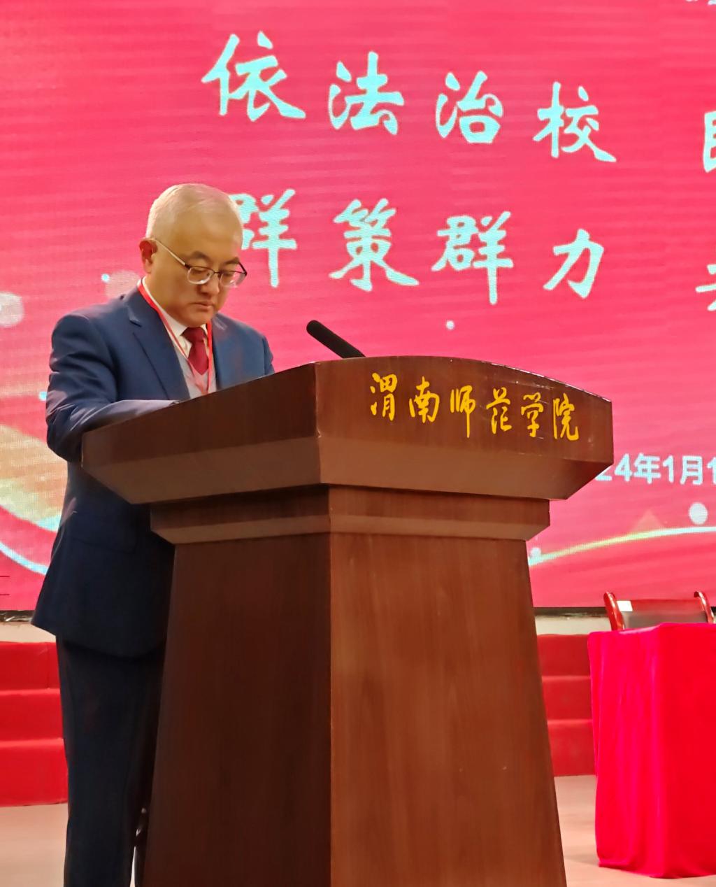 报告分析了新形势下学校高质量发展过程中的新机遇与新契机、新动能和新格局,明确了2024年工作思路和重点任务。他指出,全校上下要以习近平新时代中国特色社会主义思想为指导,学习贯彻党的二十大精神,贯彻落实习近平总书记历次来陕重要讲话重要指示精神,牢记为党育人、为国育才,践行立德树人根本任务,坚持稳中求进、以进促稳工作总基调,开展“本科教学质量提升年”专项行动,加快构建一流人才培养体系,不断提升人才培养质量,以实际行动回答好“教育强国渭师何为”的时代命题,为教育强省、教育强国建设做出更大贡献。