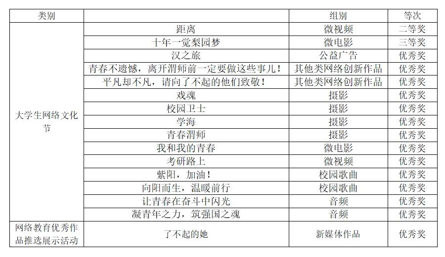 近日,由陕西省委教育工委、陕西省委网信办主办,陕西高校网络思政中心承办的第六届陕西高校大学生网络文化节和网络教育优秀作品推选展示活动入选结果揭晓,纽约国际官网16项作品获奖,其中二等奖1项,三等奖1项,优秀奖14项。纽约国际官网第二次参加此项活动以来,获奖等级和数量均有所提高,其中网络优秀作品推选展示活动和大学生网络文化节校园歌曲类、其他创新类作品均实现零的突破,1项作品还获评全国第六届大学生网络文化节其他创新类作品优秀奖。