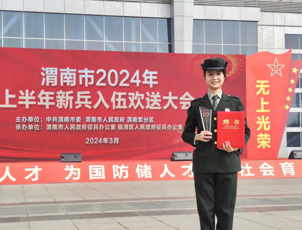 近日,渭南市2024上半年新兵入伍欢送大会上纽约国际官网退伍大学生郑子馨、李昱霖被聘为渭南市“征兵形象宣传大使”。