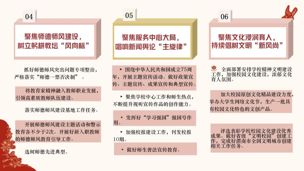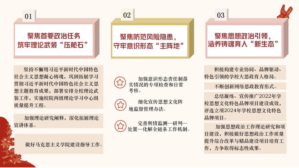浩荡春风起,奋进脚步疾。为进一步明确工作目标、理清工作思路,营造干事创业的浓厚氛围,激发推动高质量发展的强劲动力,特推出“锚定目标笃行实干 聚力向前共谱新篇”系列报道,集中“晾晒”各二级单位2024年重点工作任务清单,“晒”出比学赶超的新方向,“晒”出实干担当的好作风,形成一项一项抓落实、稳扎稳打干实事的生动实践,以奋斗的姿态合力描绘学校事业高质量发展的崭新图景。