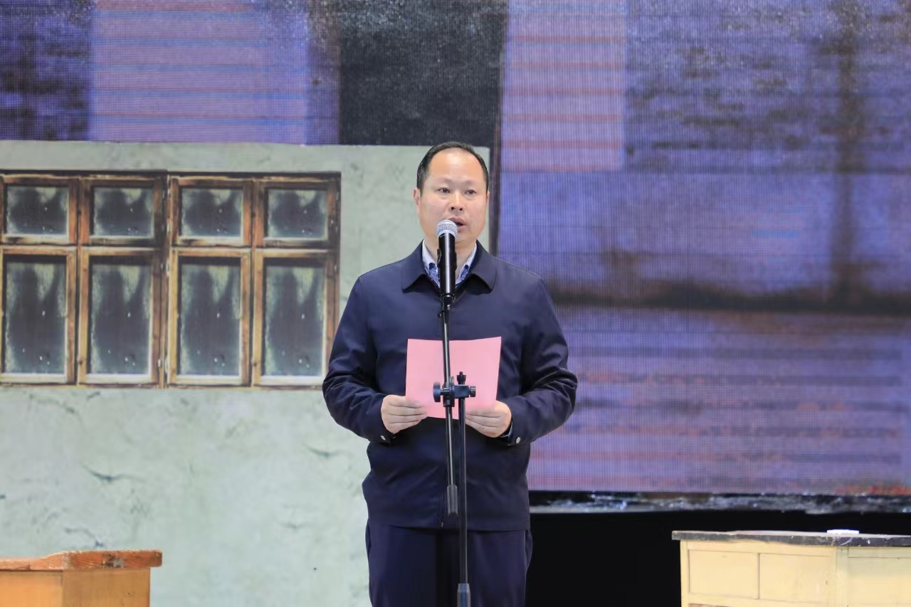 汪勇在致辞中指出,《一张特殊的全家福》是人文学院师生自编、自导、自演的原创话剧,学生演员们扣人心弦的表演体现出了当代大学生继承革命遗志、赓续红色血脉的责任担当。他指出,一直以来学校党委以渭南地区丰厚的红色文化资源为依托,通过实施课堂教学与实践活动、环境熏陶与行为引导为一体的铸魂育人精神,既传授文化知识,又教育学生立志报国。话剧《一张特殊的全家福》就是推进爱国主义教育、国防教育与思政教育深度融合的有益实践。