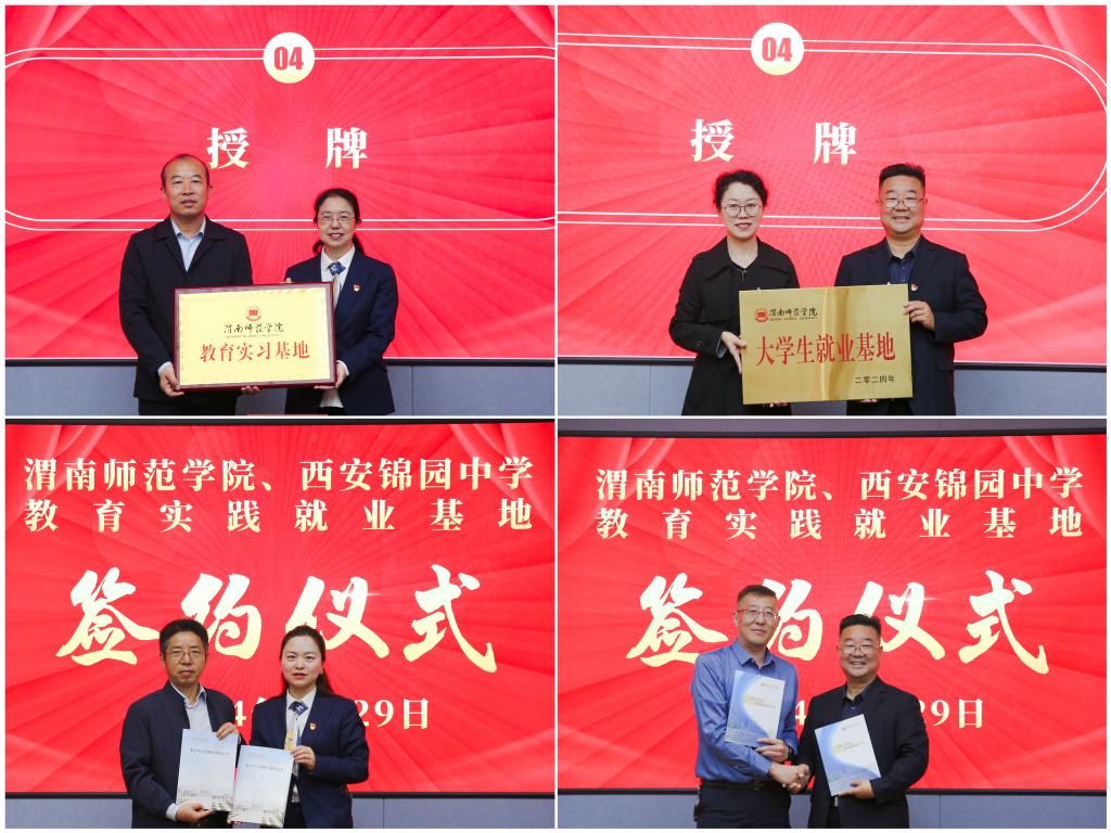 纽约国际官网马克思主义学院院长张萍对西安锦园中学为纽约国际官网搭建实践教学、就业基地平台表示感谢,她介绍了588888纽约国际线路的基本情况和签约项目的内容和意义。纽约国际官网教务处处长孙宏恩、学生工作部(处)部长田耿辉代表学校与西安锦园中学共建授牌,马克思主义学院党总支书记赵国峰、党总支副书记肖飞与西安锦园中学签订实践教学、就业基地协议。