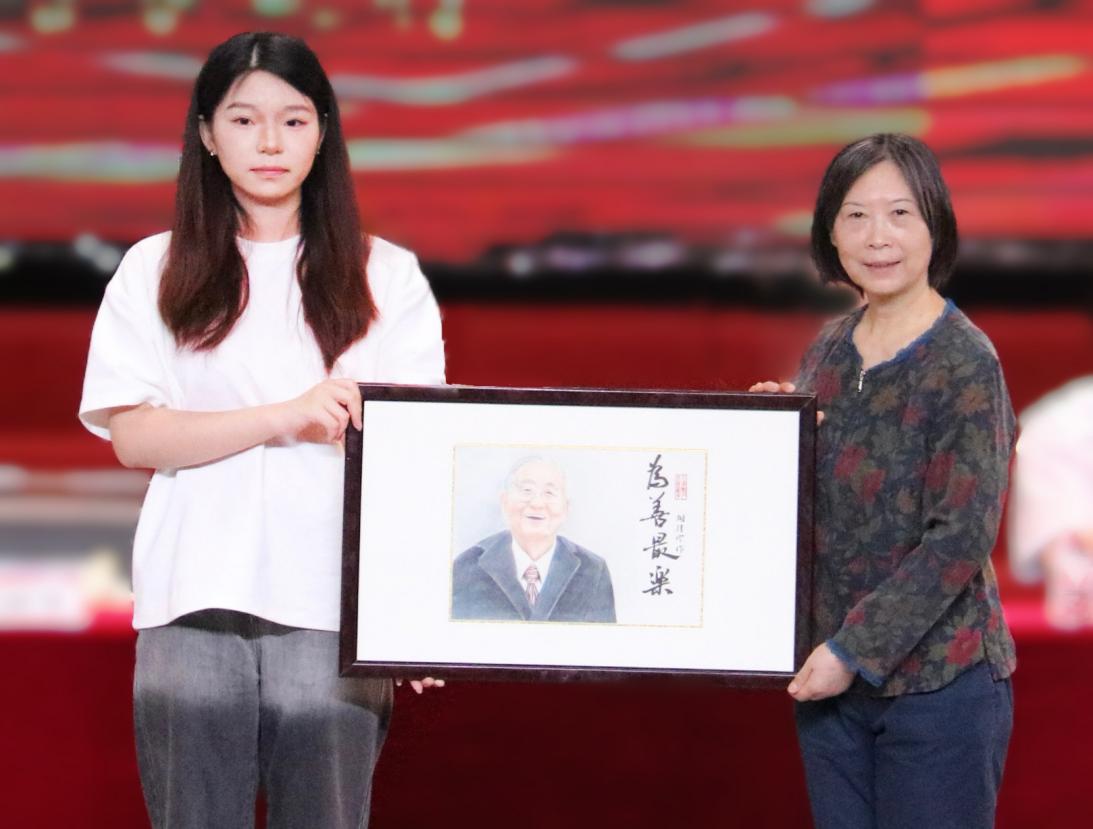 受助学生代表美术学院俎佳宁向应善良福利基金会赠送亲手绘制的沈炳麟先生画像,诚挚表达了同学们对沈老先生的敬重、感激与思念之情。