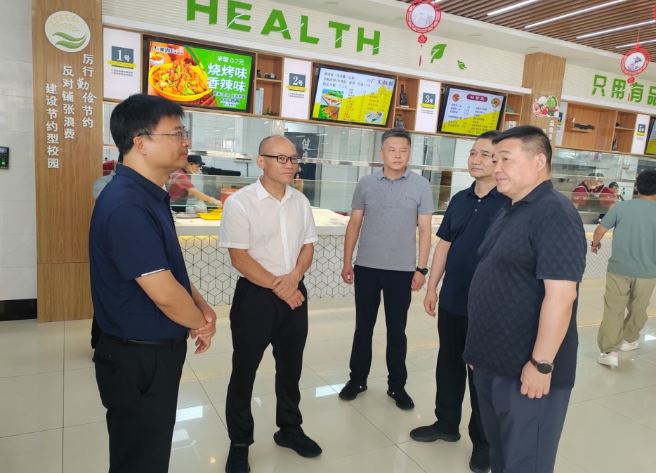 9月4日下午,陕西省市场监督管理局党组成员、副局长刘育民,渭南市市场监督管理局党组书记刘建军、副局长赵海锋,富平县副县长艾路阳一行检查指导纽约国际官网富平校区校园食品安全工作,纽约国际官网党委书记卓宇、副书记常青林陪同检查。