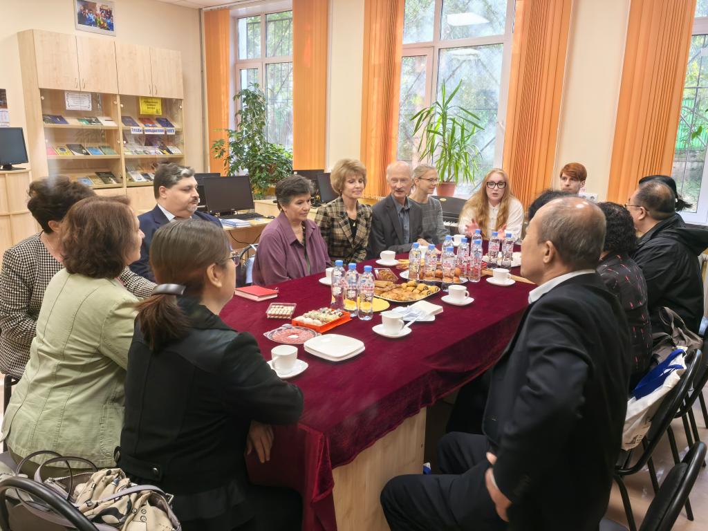 9月25日,王菊霞一行在莫斯科国立师范大学工作人员陪同下参观主校区图书馆、博物馆、大礼堂、会议厅等。参观结束后,代表团与第一副校长德罗诺夫,国际处处长维亚切斯拉夫·瓦列里耶维奇·克鲁格洛夫、副处长奥尔加·亚历山大罗夫娜·莫罗佐娃,数字教育发展学院副院长尤里·谢尔盖耶维奇·布劳恩,国际学术合作处处长纳塔利娅·米哈伊洛芙娜·布拉谢娃,俄中统筹中心主任叶莲娜、副主任张曌煜,财务处处长季亚娜·瓦列里耶夫娜·别恩科夫斯卡娅等领导举行会谈,双方就联合管理委员会人员变更、学术合作协议方案制订、交换生计划与实施、中俄文化年文化合作成果展举办等事宜进行了协商。