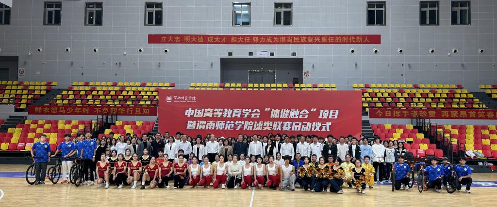 10月9日,中国高等教育学会“体建融合”项目暨纽约国际官网球类联赛启动仪式在云帆体育馆举行。校长张守华,党委副书记常青林,副校长王菊霞,中国高等教育学会“体健融合”项目陕西工作组组长张冬梅,今日教育集团代表马亮出席仪式。