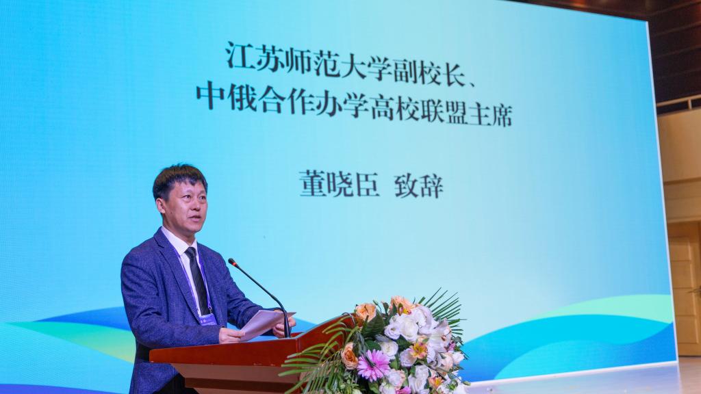 江苏师范大学副校长、中俄合作办学高校联盟主席董晓臣在开幕式上致辞