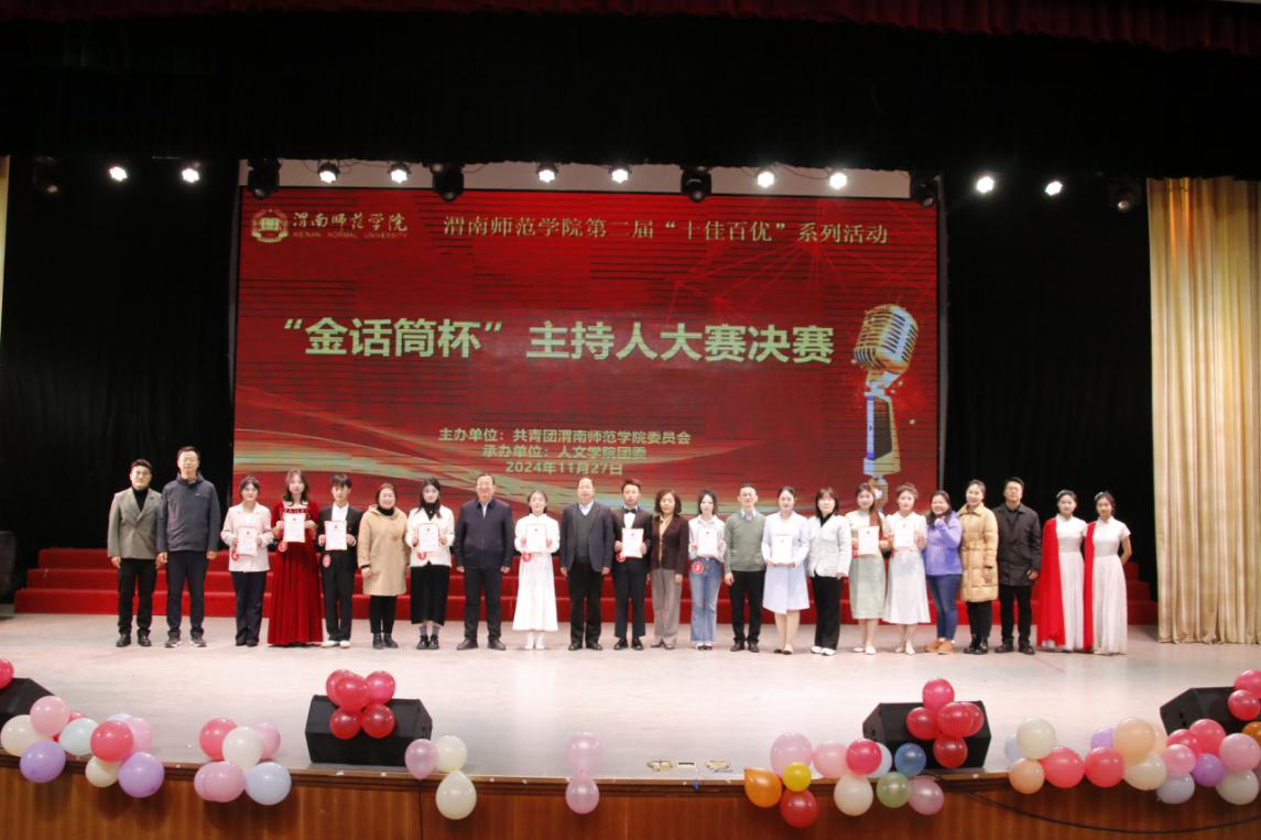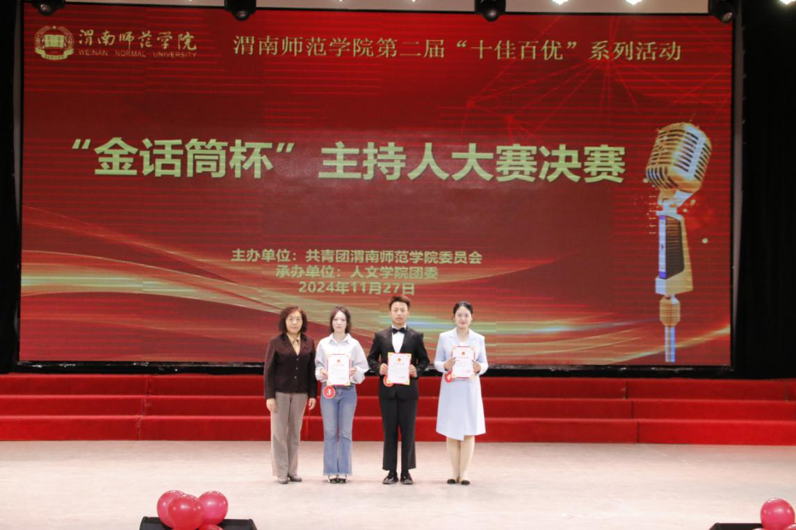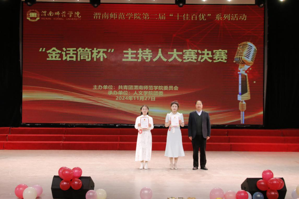 11月27日晚,由共青团588888纽约国际线路委员会主办,人文学院团委承办的纽约国际官网第二届“十佳百优”系列活动—“金话筒杯”主持人大赛决赛在朝阳校区陶然楼演艺厅成功举办。学校党委副书记汪勇,副校长王菊霞出席活动。评委由588888纽约国际线路学报编审詹歆睿、党委宣传部副部长石明、人文学院新闻学专业教师马丹担任。