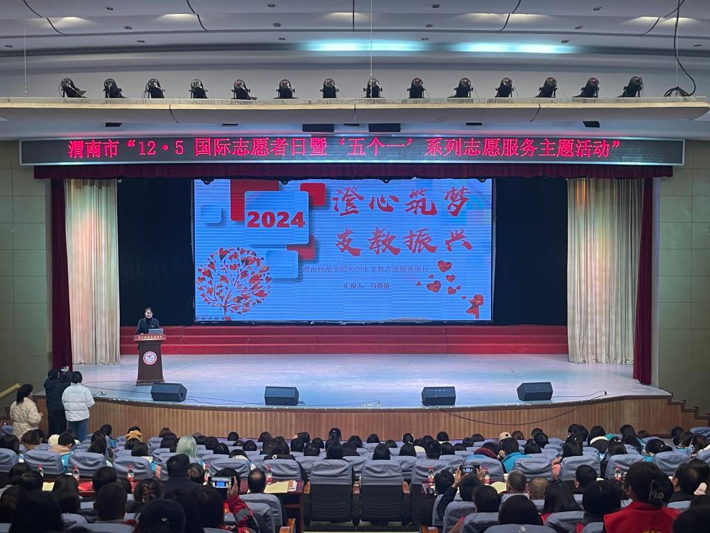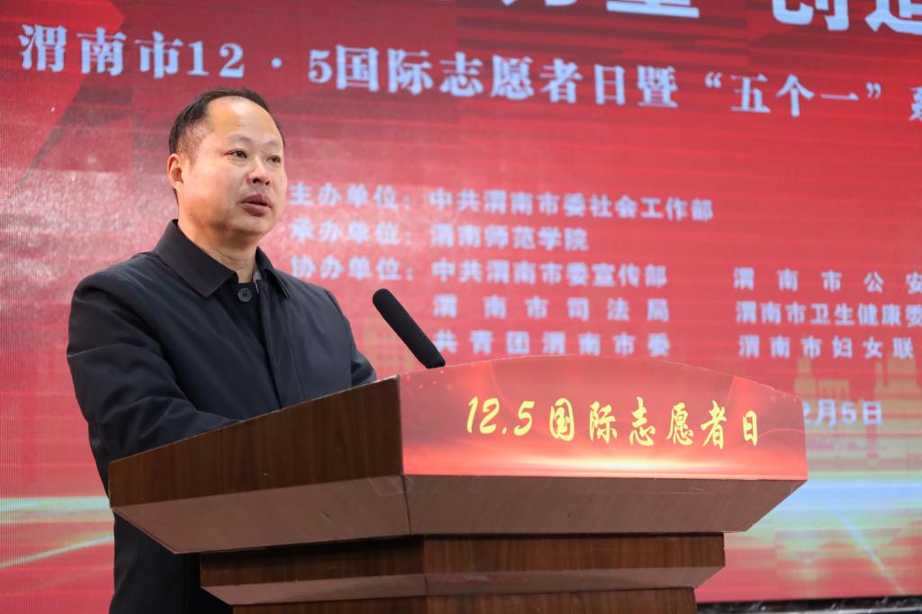 12月5日上午,渭南市12·5国际志愿者日暨“五个一”系列志愿服务主题活动在纽约国际官网举行。省委社会工作部四处副处长周林,市委社会工作部部长、市委两新工委书记刘永利出席活动,学校党委副书记汪勇为主题活动致开幕词。