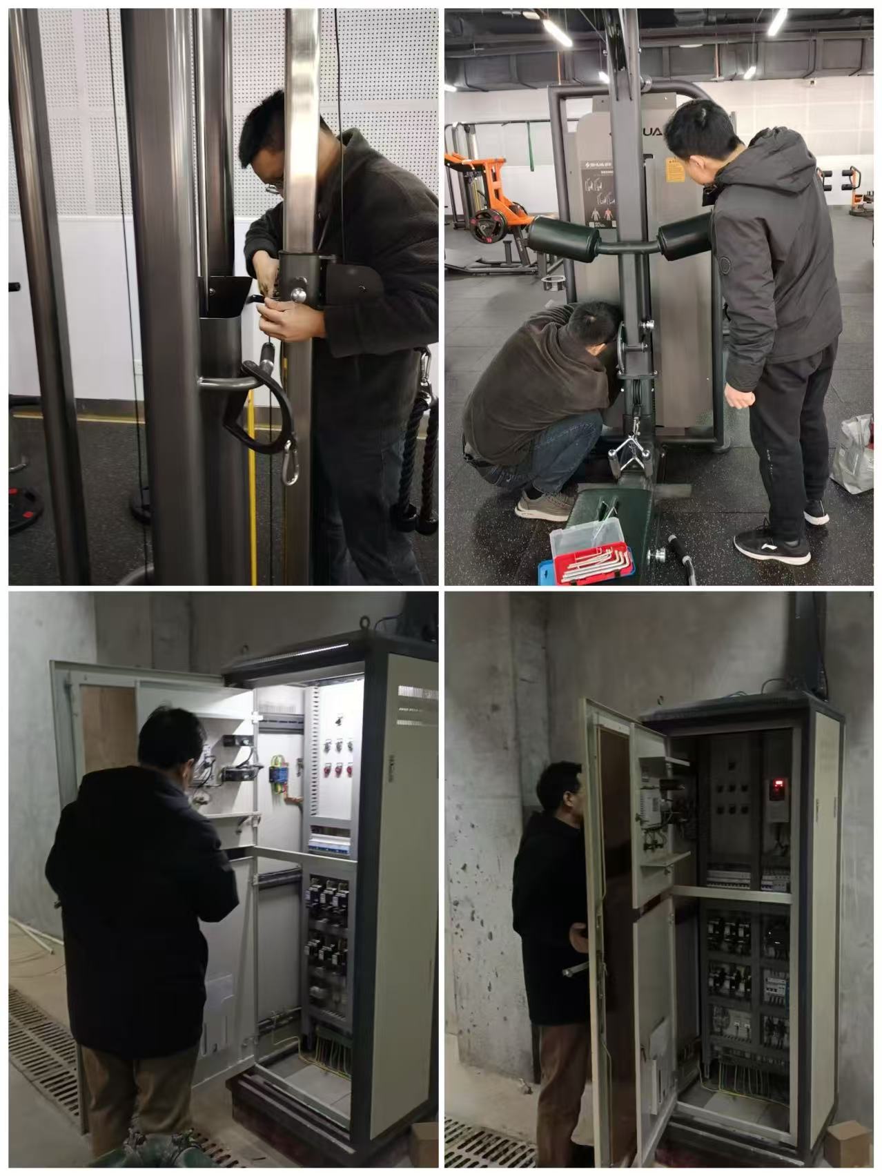 资产经营公司假期对云帆体育馆健身器材进行维护保养、并对场馆内供水系统进行维护