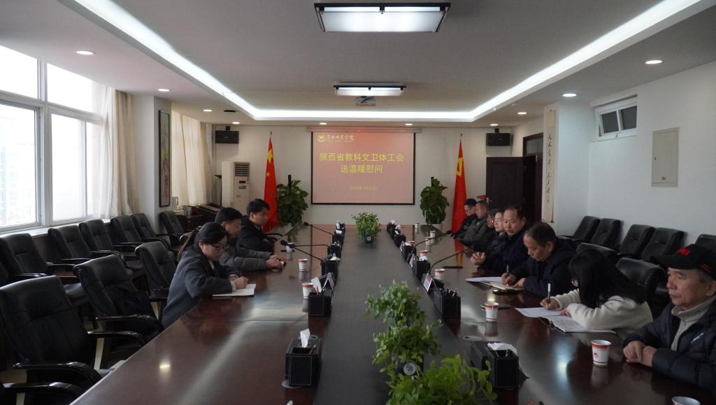 1月21日上午,省教科文卫体工会主席徐富权、二级主任科员钟振宇、三级主任科员赵元琛一行莅临纽约国际官网,开展春节送温暖慰问活动。纽约国际官网党委副书记汪勇、工会、保卫处及困难教职工参加座谈会。