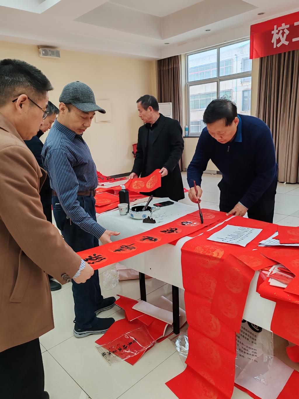 翰墨飘香贺新岁,春联送福启新程。1月22日,由校工会、渭南市书画协会举办的“迎春贺岁送春联”活动在朝阳校区职工之家举行,校内书法家、书法爱好者挥毫泼墨,笔走龙蛇,大家齐聚一堂向全校教职工送上新春祝福。