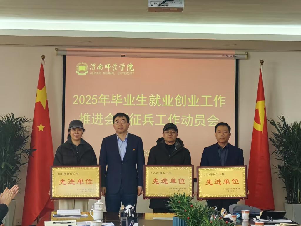 学校党委委员、副校长王菊霞宣读了《关于表彰2024年就业工作先进单位和先进个人的决定》《关于表彰2024年征兵工作先进单位的决定》。张守华向2024年就业工作先进单位和征兵工作先进单位颁发奖牌。