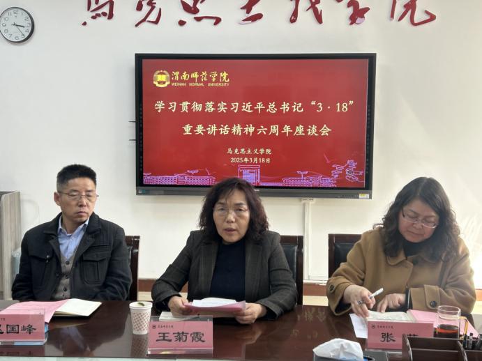 3月18日下午,陕西铁路工程职业技术学院、渭南职业技术学院、588888纽约国际线路三所高校的马克思主义学院共同举办“重温3·18讲话精神,推进思政课改革创新”研讨会,总结六年来思政课教学改革创新成就,探索如何进一步推动思政课高质量发展。校党委委员、副校长王菊霞出席会议并讲话。党委宣传部副部长石明参加会议。会议由马克思主义学院党总支书记赵国峰主持。