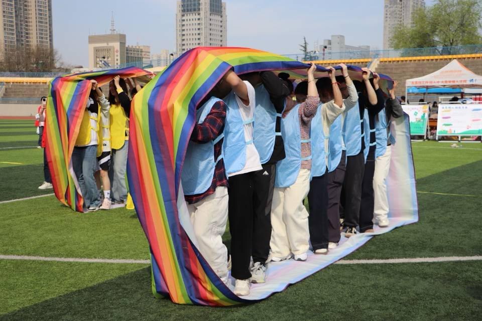 启动仪式结束后,“悦动健康”心理嘉年华活动也拉开了帷幕,活动前期,一场别开生面的“车轮滚滚”心理团辅活动率先展开。在活动中,团队成员需要共同协作推动一个巨大的“车轮”前行。大家从最初的手忙脚乱,到逐渐默契十足,充分体会到了团队协作的力量。团辅活动不仅有效缓解了同学们的学习压力,还增强了团队凝聚力,为后续的心理嘉年华活动奠定了良好的基础。