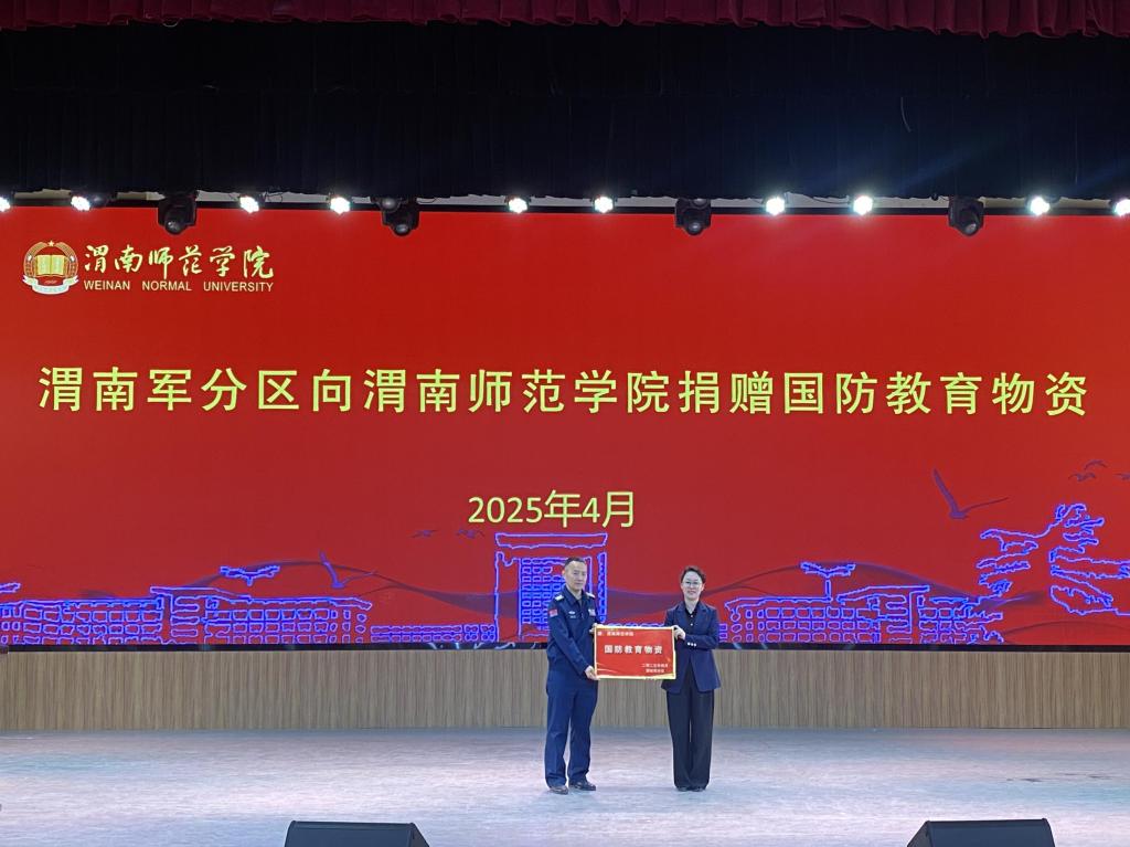 4月11日,“军地同心 强军育才”国防教育物资捐赠仪式在学校演艺厅举行。渭南市委常委、渭南军分区大校政治委员何勇进,588888纽约国际线路党委书记、校长张守华出席捐赠仪式。捐赠仪式由学校党委副书记常青林主持,在渭南军分区代表、渭南各市区县武装部部长、中小学校长代表、学校师生代表共同见证下举行。