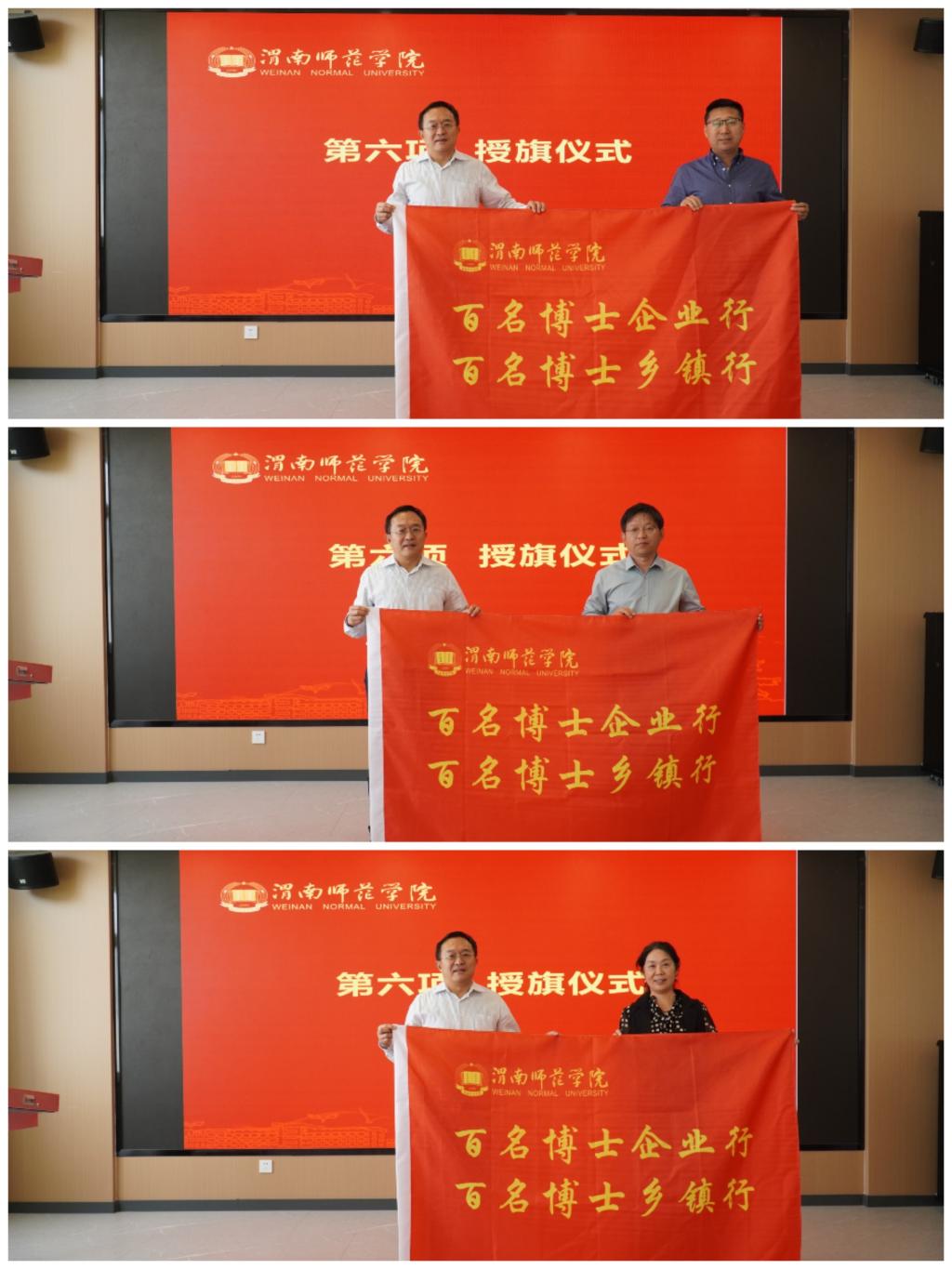 与会领导为15支博士服务团授旗。博士团将深入企业一线,加速科研成果转化,为渭南区域经济圈建设注入智力引擎。