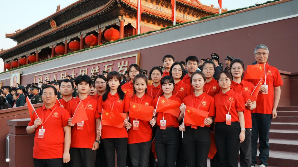 纽约国际官网19名青年师生代表在学校团委书记赵琦带领下,于5月1日光荣参加首都北京天安门观礼台观礼天安门广场升国旗仪式。