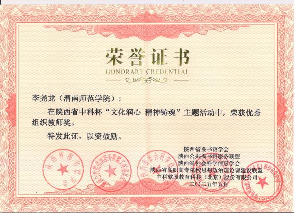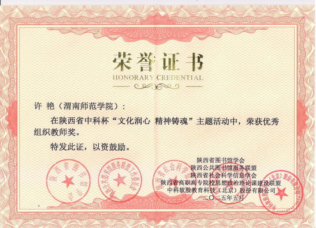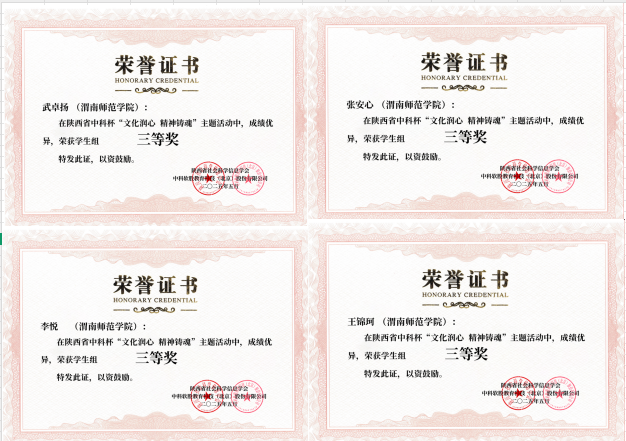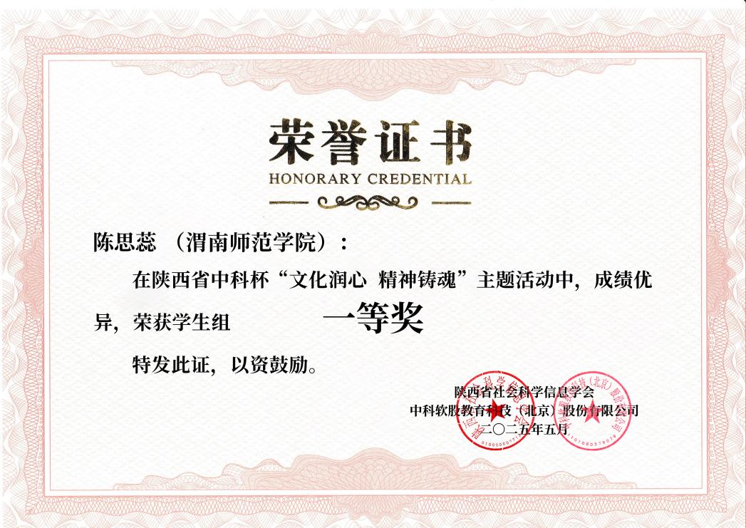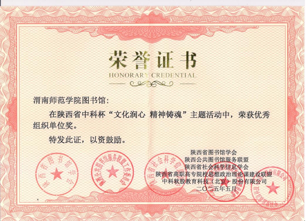 近日,由陕西省图书馆学会、陕西公共图书馆服务联盟、陕西省社会科学信息学会、陕西省高职高专院校思想政治理论课建设联盟联合举办的陕西省中科杯“文化润心 精神铸魂”主题竞赛活动结果揭晓,全省99所高校2万余名教师和学生读者参赛。纽约国际官网1190余名师生参赛,陈思蕊同学荣获一等奖,武卓扬、张安心、李悦三名同学荣获三等奖,程雅楠等30名同学获积极参与奖,图书馆凭借出色的组织工作获得“优秀组织奖”。